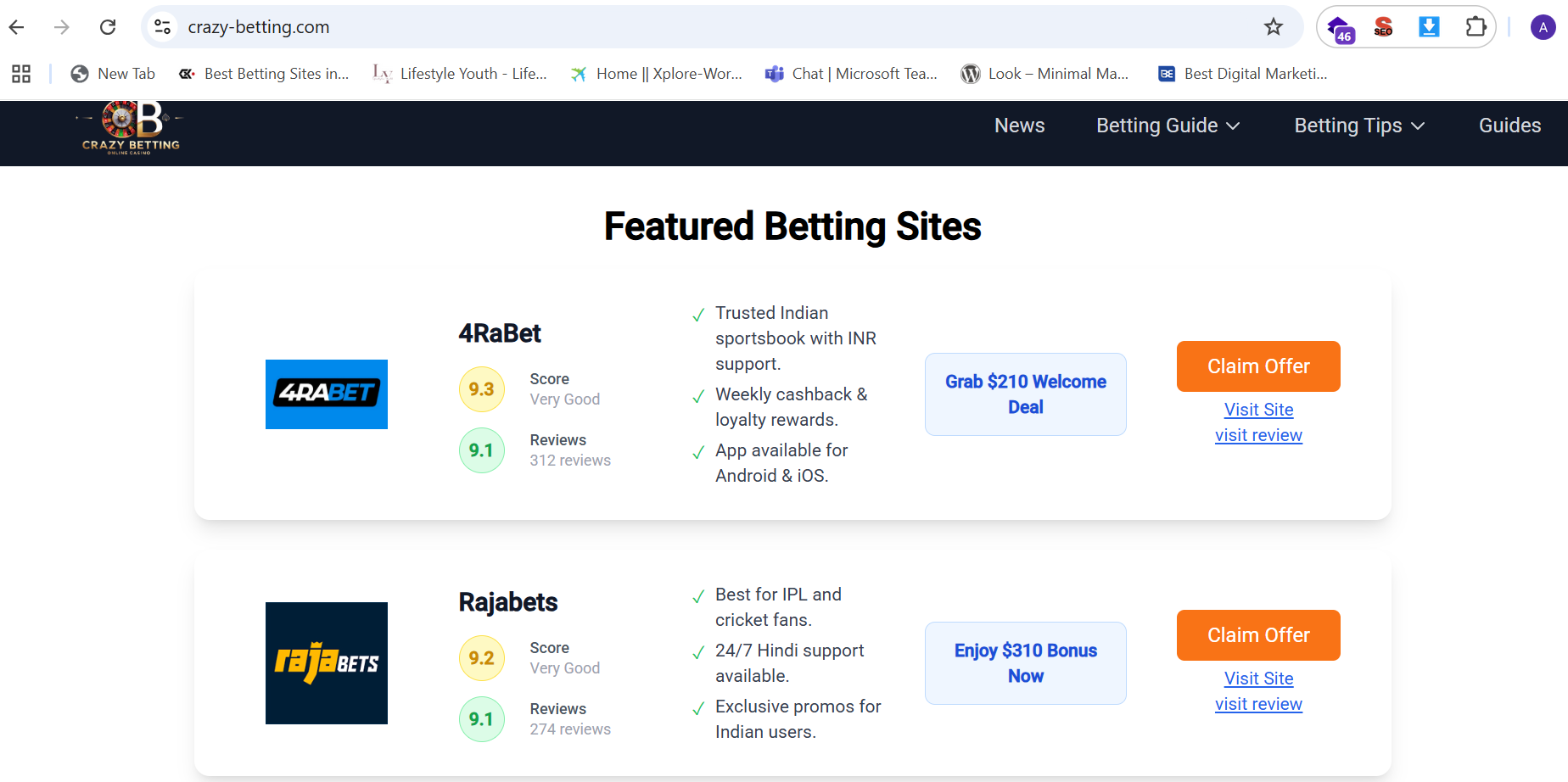 ✅ Honest reviews of top betting platforms like 4rabet, 1xBet, Parimatch, Stake, and more