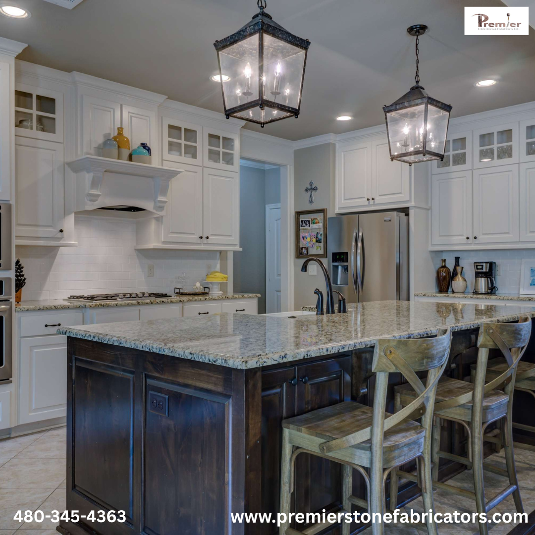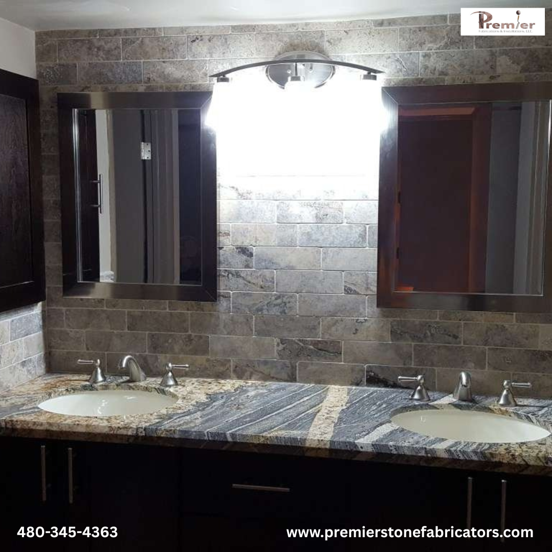 Premier is a locally owned and operated company specializing in Natural Stone, Granite, Marble, Quartz Surfacing and Solid Surface products.Custom stone design, fabrication & installation. We do cabinets - kitchen and bathroom remodels. Unique, master-crafted stonework creations for kitchens, bathrooms, pools, fountains, patios & more. Natural stone tile work for floors, counters and surfaces. Get a free estimate today! We specialize in custom home kitchen & bath design. Find us in Mesa, AZ - we design and remodel homes and businesses all over Metro Phoenix, and Arizona. Commercial countertops, vinyl counters and surfaces. We do cabinetry design, fabrication and installation.