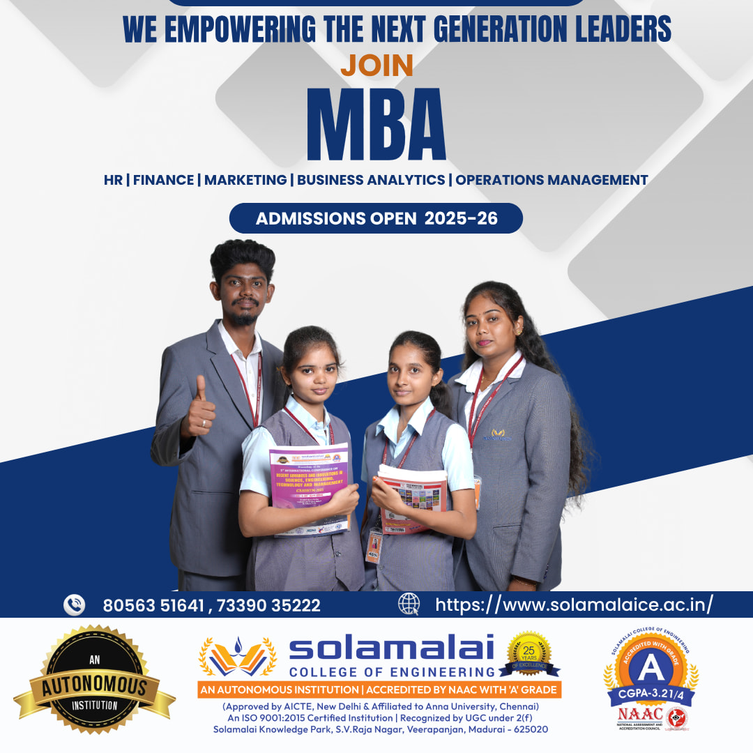 Solamalai College of Engineering, a leading Autonomous Engineering College in Madurai accredited by NAAC with an A grade, Offering diverse undergraduate and postgraduate programs, we focus on academic excellence, innovation, and industry collaboration. With a rich history dating back to 1995 and strong leadership under the Solamalai Group, we nurture global citizens committed to societal impact. Join us for a transformative education that blends theoretical knowledge with practical skills, preparing you for a dynamic future.